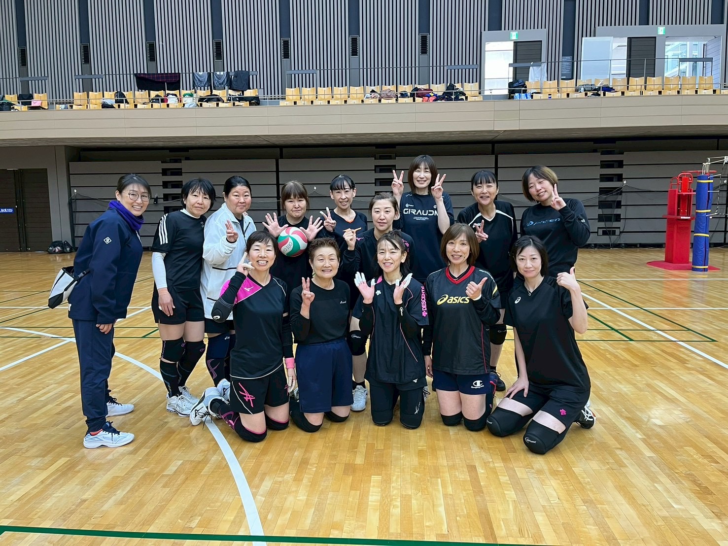 笑い合い助け合いながら、バレーを楽しんで練習してます。(膝も笑ってます‼︎)