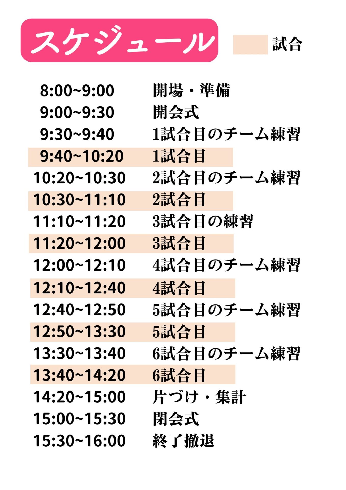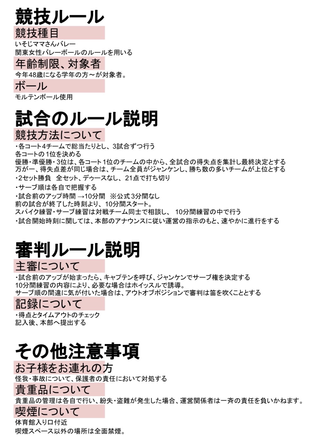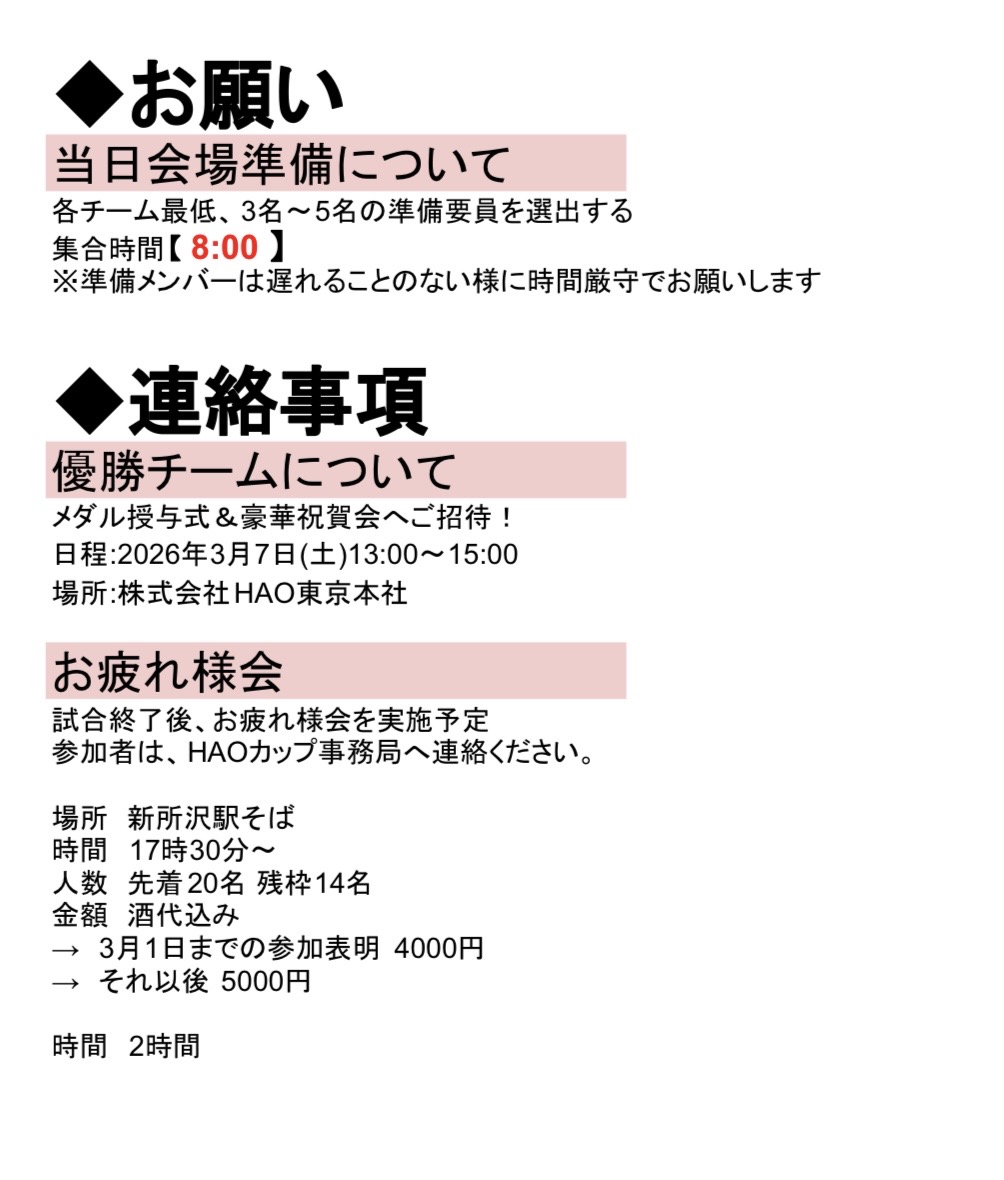 集合:8:00→準備として、各チーム必ず3名以上が参加必須 その他8:30