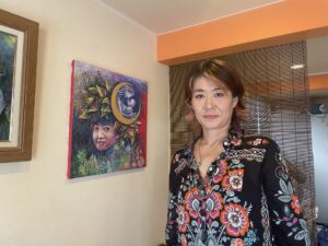 レストランでは、顧客が食事をする約2時間の間に音楽と同時に絵を描くライブペインティングを初めて体験しその後、計5回ほど行う中でとてもやりがいを感じています。